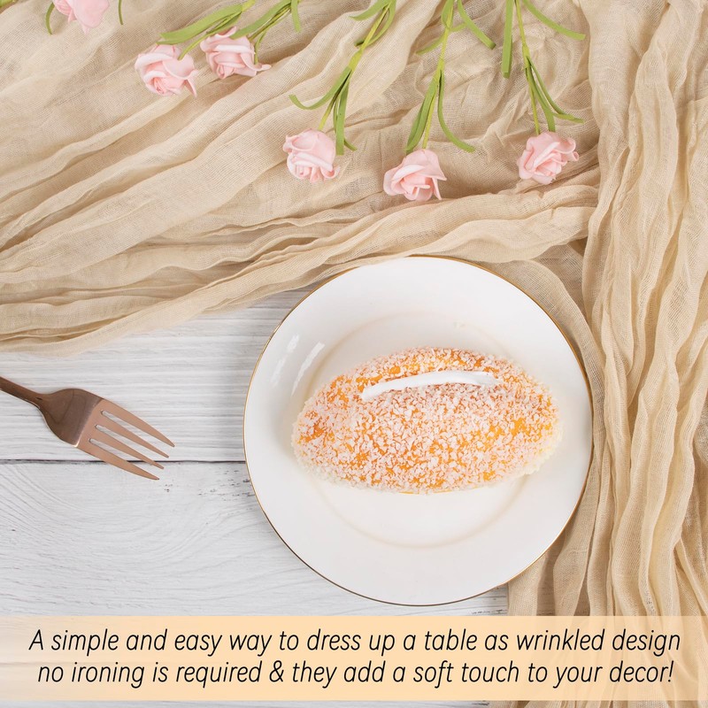 LEREATI Beige Cheesecloth Table Runner 90cm x 400cm Chiffon Table Runner Gauze Fabric Sheer Cheese Cloth Table Runner for Dresser Birthday Wedding Dining Room Summer Boho Decoration