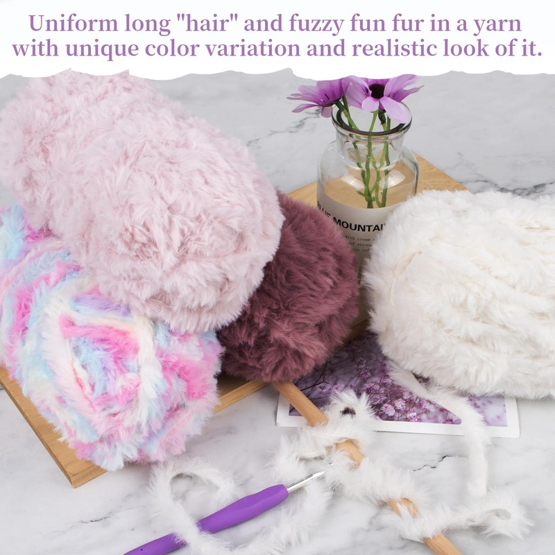 - Fuzzy yarn for crochet: you will receive 3 strands of 100 g thick, fluffy yarn. This fun fur yarn is made of polyester, is soft and very insulating and is ideal for making various crafts.