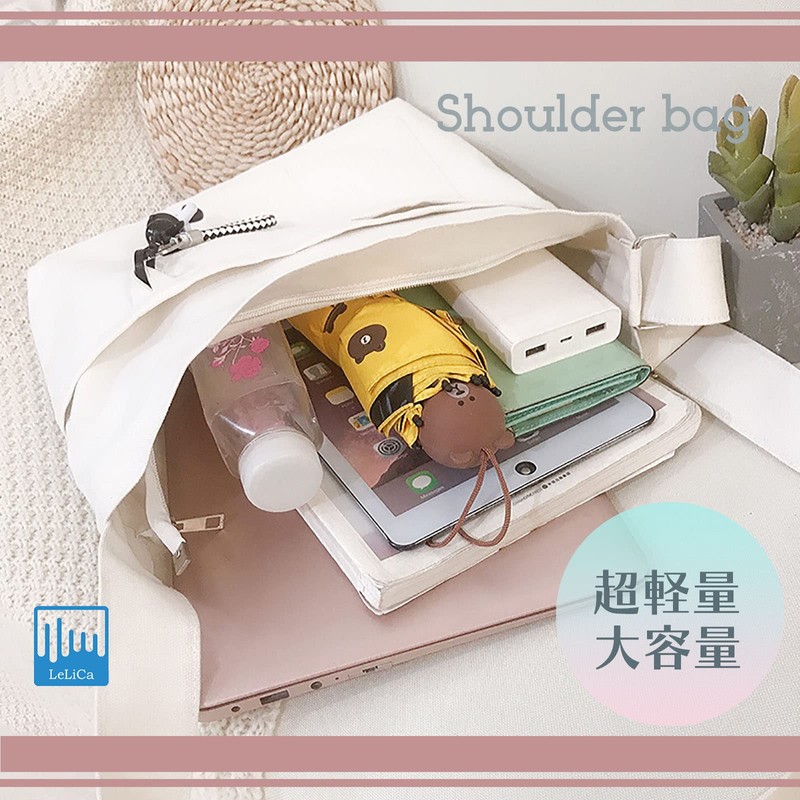 - A plain shoulder bag that combines elegance. Easily store your smartphone, wallet, files, notebooks, ipad, plastic bottles, etc. Recommended for those who want to carry a lot of items even during everyday use. Adjustable straps and large capacity make it perfect for a lifestyle of a wide range of ages. It is functional with a zipper and an outer pocket