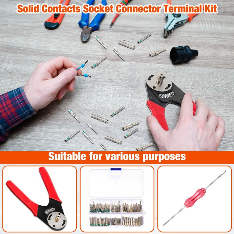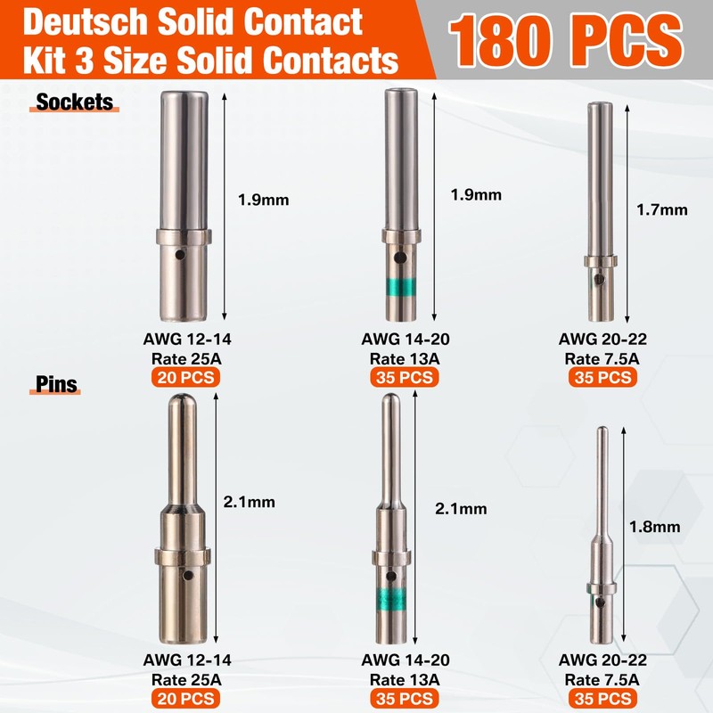 - Complete Tool Kit: Includes 180 solid contacts (sizes 12, 16, 20), a 4-indent crimper, and a wedge lock removal tool. Designed for sturdy, reliable connections with male and female terminals for various uses