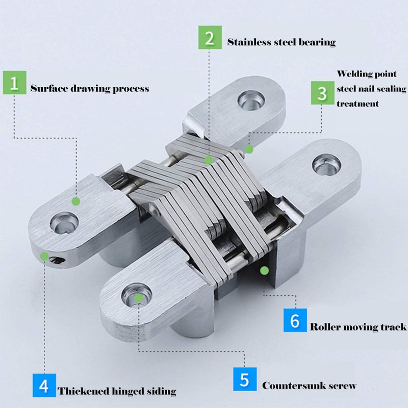 LERT Zinc Alloy Cross Hinge, Invisible Cross Hinge for Folding/Hidden Door, 2 pcs (13×45 mm)