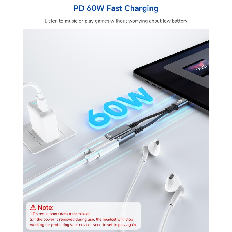 - 2-in-1 USB C to 3.5mm adapter: The usb c to 3.5mm audio charger adapter divides your USB-C port into a PD-compatible USB-C port and a 3.5mm audio jack, allowing you to listen to music, play games, calling or watch videos while fast-charging your devices simultaneously. And this usb c to aux adapter supports wire control function as well. NOTE: The aux to usb c does NOT support data transfer