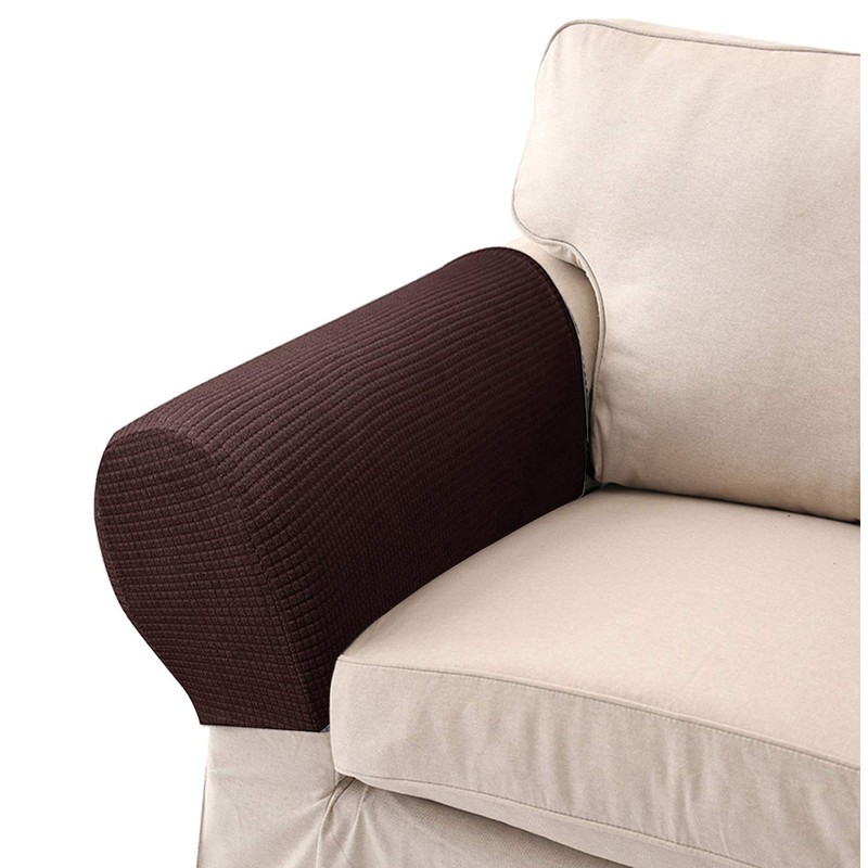 LERTREE 1 Pair Sofa Arm Slipcovers Elastic Sofa Armrest Protectors Removable Chair Sofa Armrest Covers (Coffee)