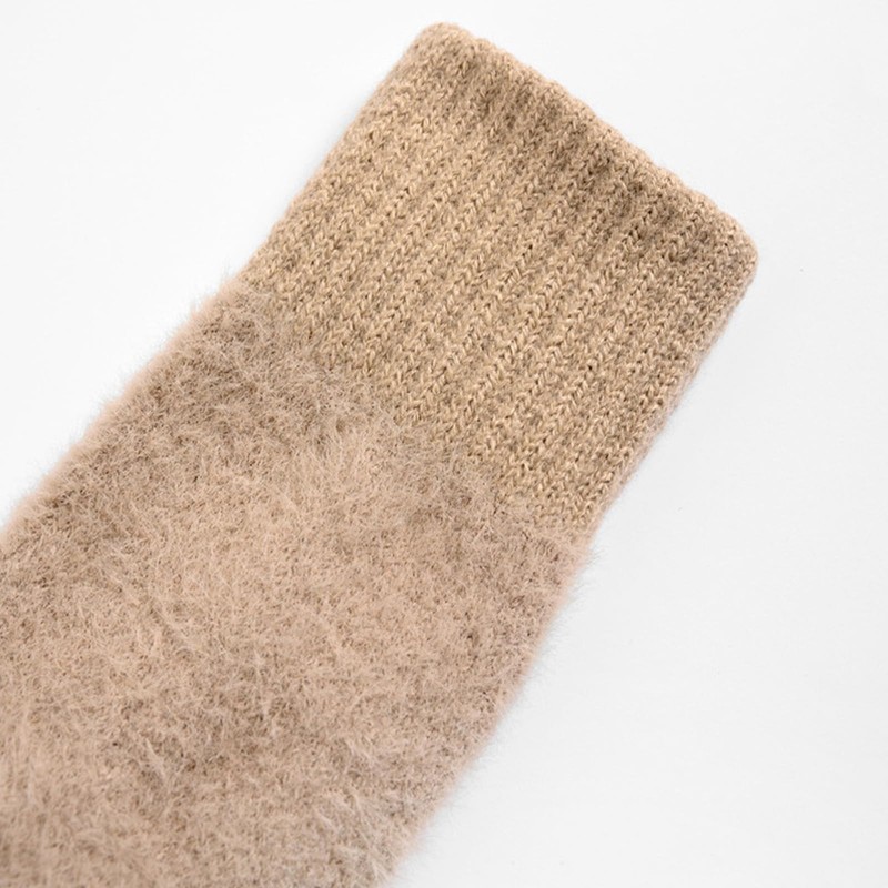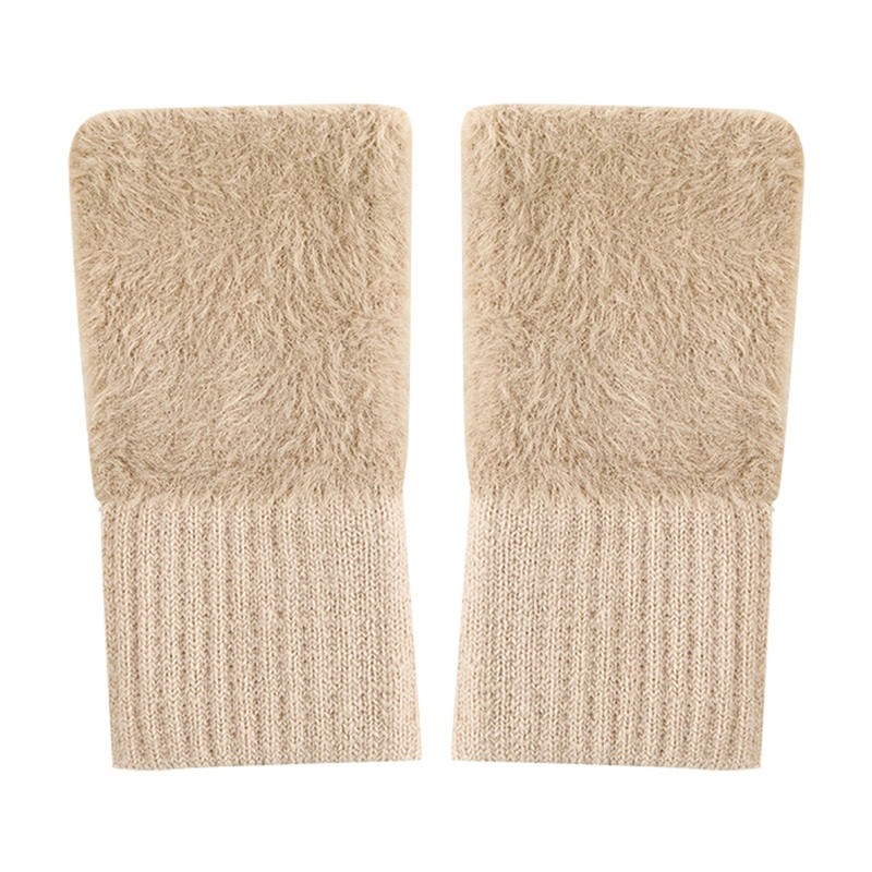 LERTREE Winter Warm Half Finger Gloves Fluffy Fingerless Wrist Warmer Stretchy Knitted Mitts Unisex (Khaki, L)