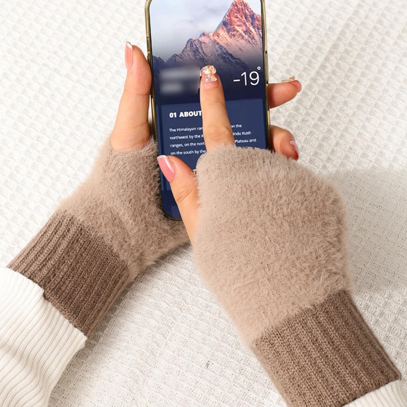 - These stylish fingerless gloves feature a soft, plush faux fur lining for ultimate warmth and comfort.