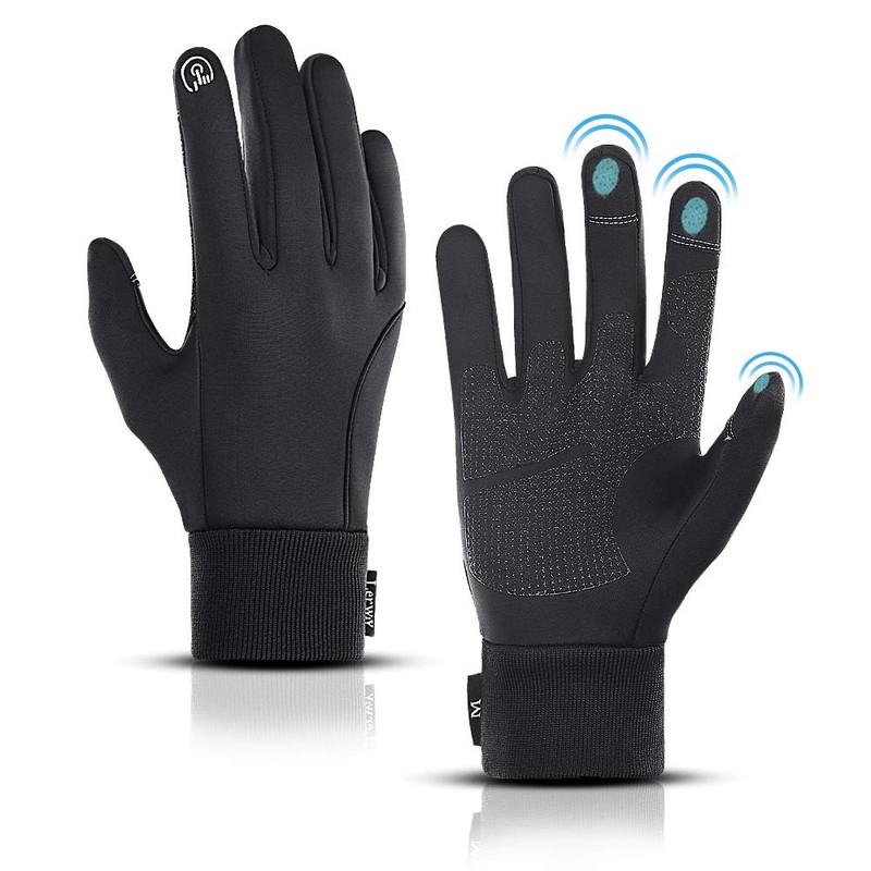 - (Cold and Windproof) The interior is lined with a soft fleece lining and has firm stitching. Elastic cuffs hug your wrist and keep cold wind out. These comfortable sports gloves are both cold and windproof, waterproof, thermal and durable, and will keep your hands warm even when the temperature drops down to 5 degrees Celsius