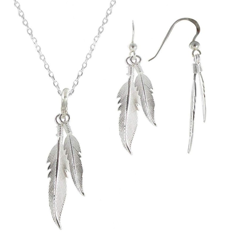LES POULETTES BIJOUX - Set 925 Silver Feather Necklace and Earrings, Other material, without stone
