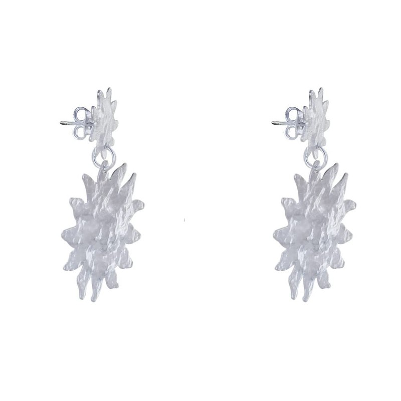LES POULETTES BIJOUX - Silver Metal Earrings Two Hoops Sun, Metal