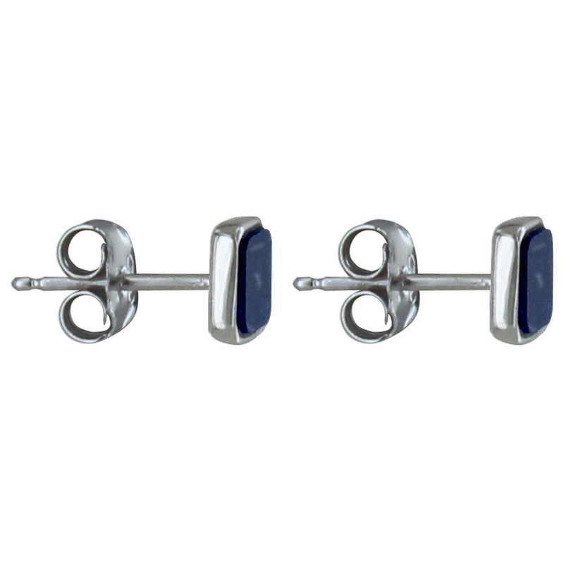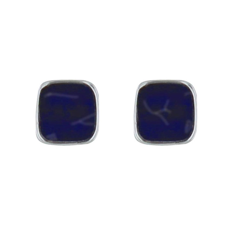 LES POULETTES BIJOUX - Silver Stud Earrings Small Square of Sodalite, Sterling Silver
