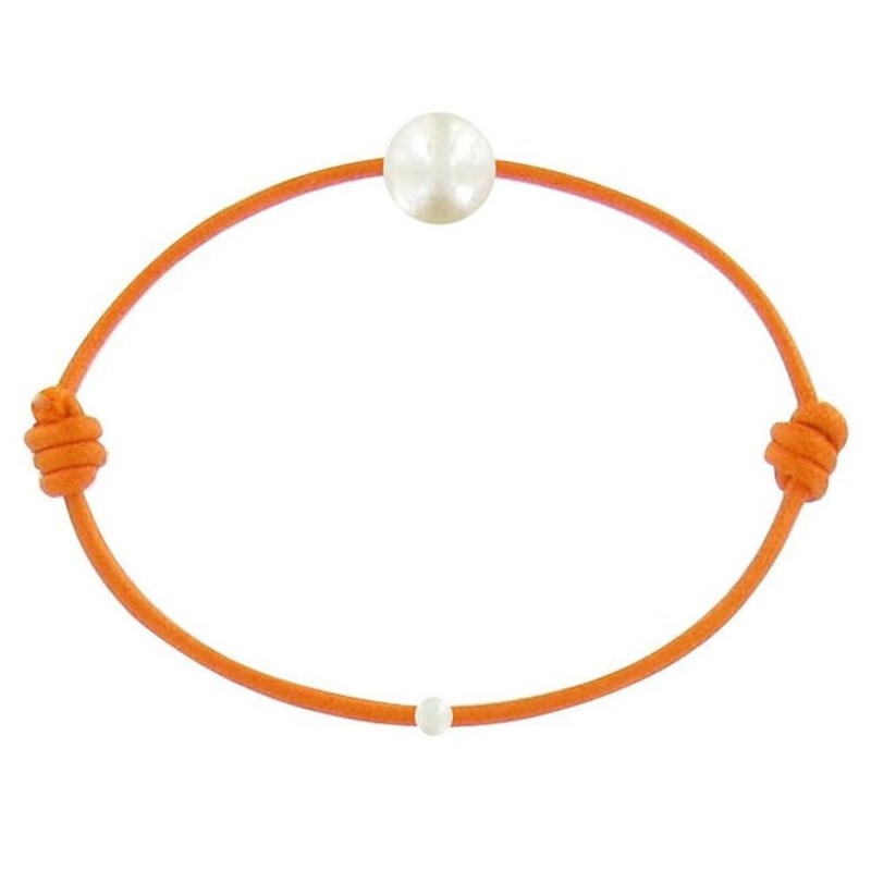LES POULETTES BIJOUX - White Cultured Freshwater Pearl Link Bracelet 8-9 mm - Colors - Orange