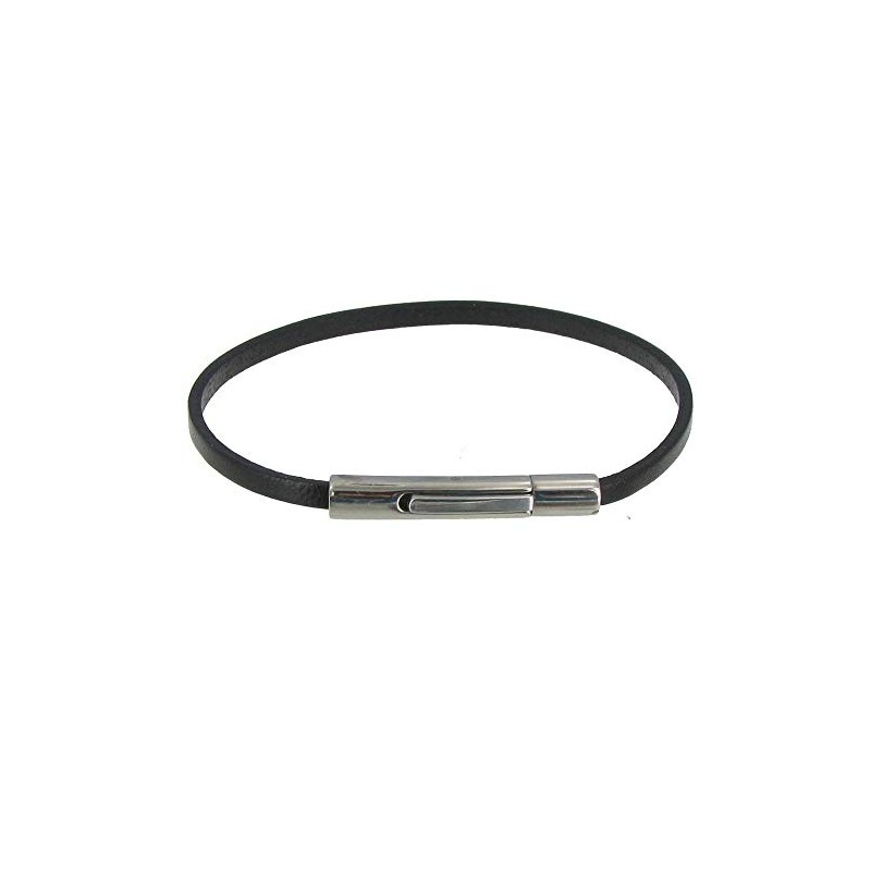 Les Poulettes Jewels - Bracelet Black Simple Leather Stainless Steel Clasp