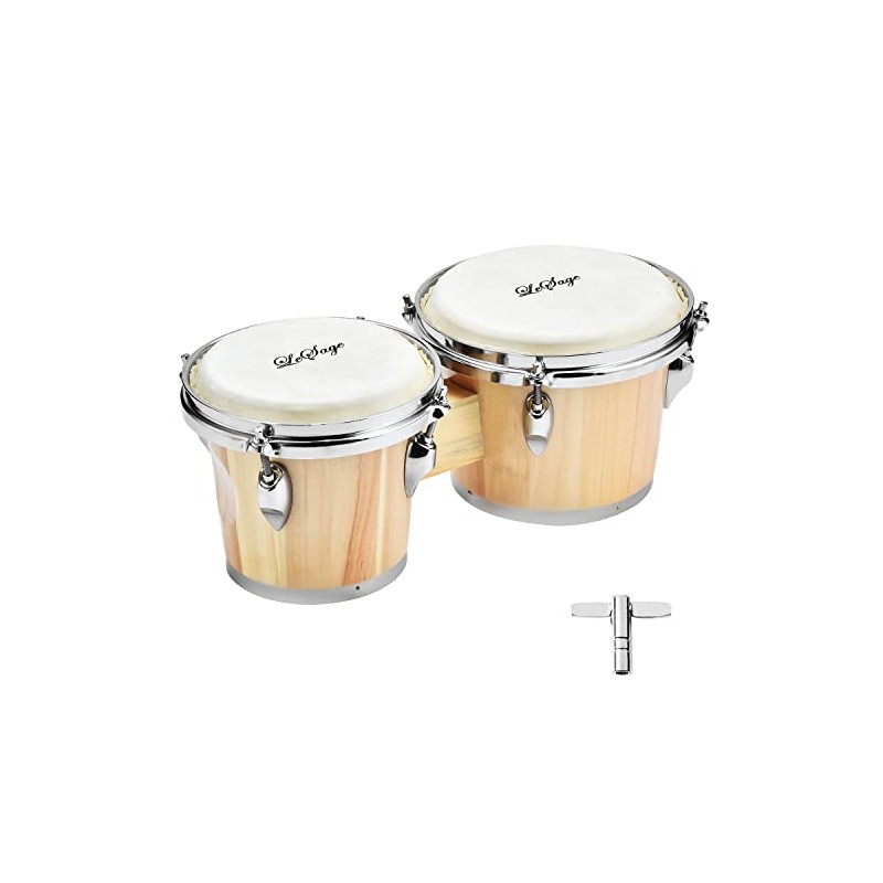 LeSage Bongos Drum for Kids Adults Beginner Bongos 7 in and 8 in Natural Wood Bongo Set Real Skin Drum Head with Tuning Key Bongo Drumset