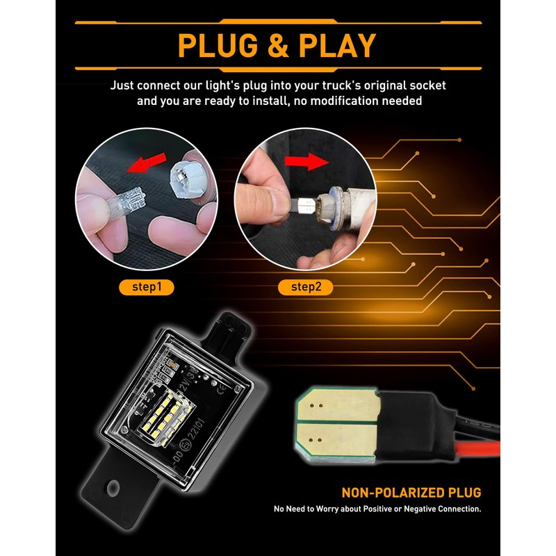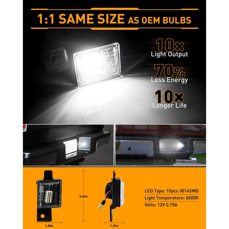 - [ Full SMD LED, 300% Brightness Improved] Built-in full high power SMD LED chips, LESAUCE LED license plate lights for Silverado are 300% brighter than OEM tag lights, improving the visibility on rear license plate light especially driving at night