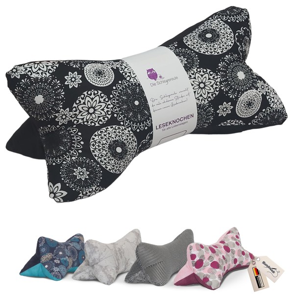 Leseknochen Nackenkissen (Mandala schwarz) bequem und waschbar! Handgestopft und genäht in Deutschland - Nutzbar als Nackenrolle Kissen Nackenrolle