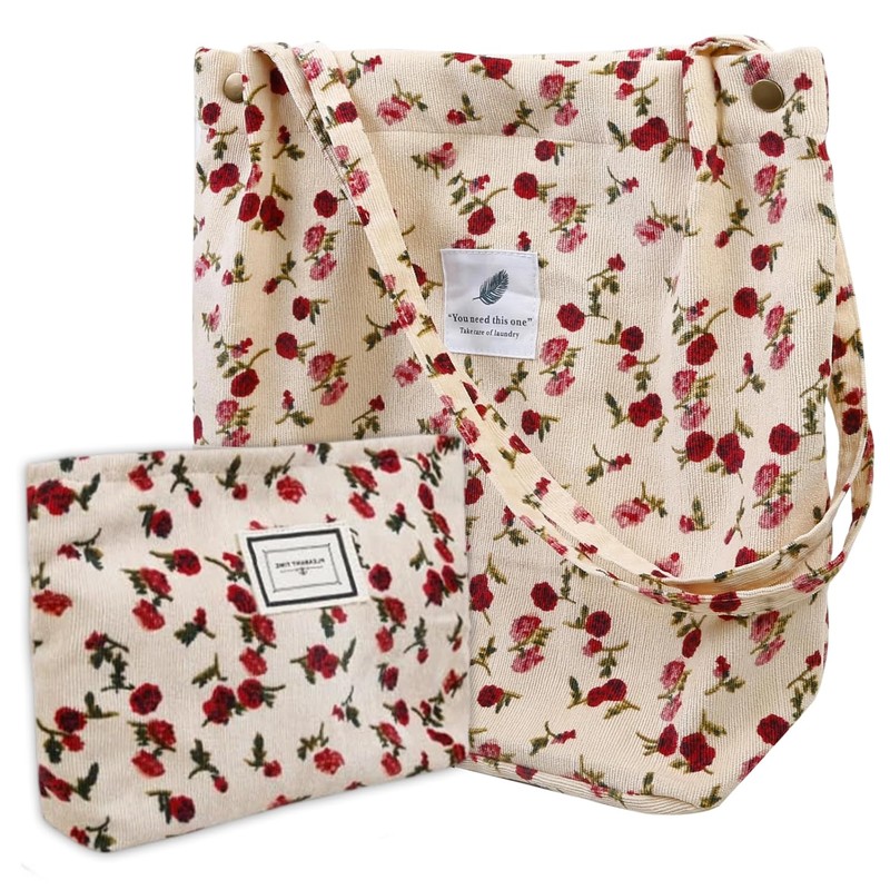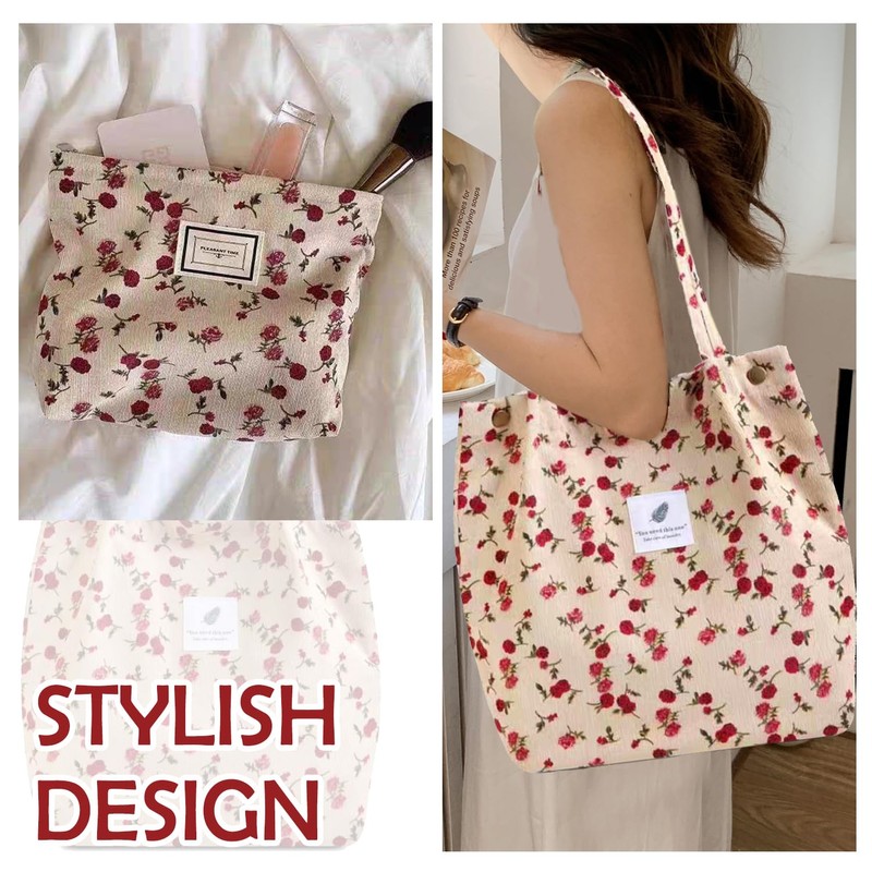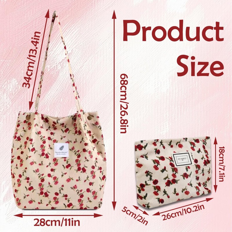 - 【High-quality Corduroy Material】This cute tote bags for women and the matching small cosmetic bag are both carefully crafted with high-quality corduroy. The reinforced shoulder strap design makes it easier to carry when traveling, adding a caring touch to your daily life.