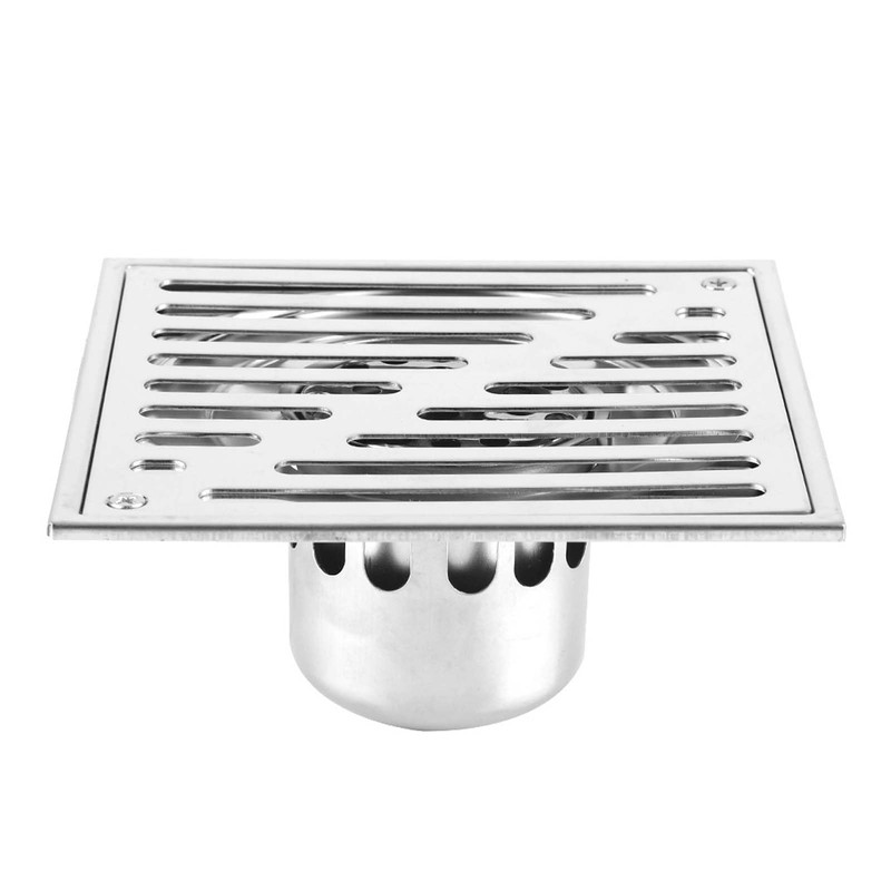 - [Application] The shower drain made of less steel is equipped with a brushed surface. The grid is modern in design and fits almost all tile patterns. The shower floor drain is widely used for bathroom, kitchen, garage, swimming pool, laundry room, basement, etc.