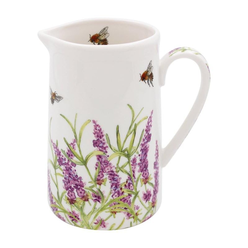 Lesser & Pavey British Designed Jug for Kitchen and Home | Lovely Printed Jug for Milk Water Juice and Other Needs | Bee Tanical Lavender Jug for Home & Office Kitchens - Sarah Boddy