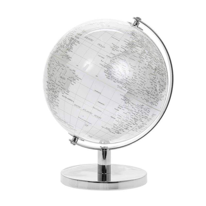 Lesser & Pavey Vintage Rotating Silver & White World Globe with Metal Stand for Your Desk/Office, Silver, 27cm