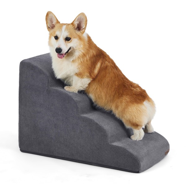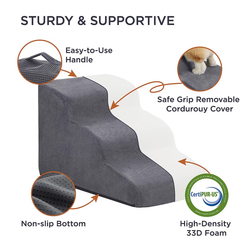 - Durable & Sturdy: These pet ramp stairs feature strong and reliable 33D high-density, lightweight foam, ensuring a robust build that's easy to move while providing stable support for cats and small/medium-sized dogs. The non-slip corduroy pet stair cover adds extra stability, ensuring your pet's safety and preventing any mishaps as they navigate up and down.