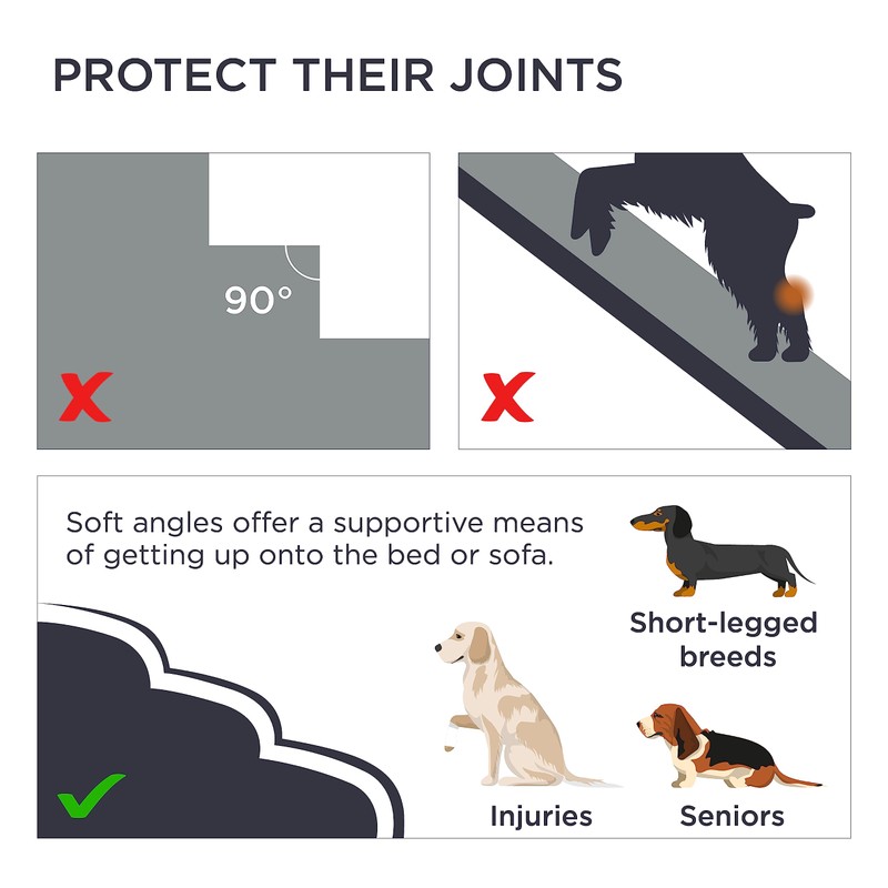- Joint-Friendly Ramp Design: The gentle slope of this ramp offers an ideal mobility solution for dogs up to 50 lbs. The wide and deep steps help reduce strain on your pet's joints, preventing injuries from constant jumping on and off furniture in your living room or bedroom, promoting overall pet well-being. Perfect for puppies, short-legged breeds, injured dogs, dogs with limited mobility, and older pets. Experience better pet care with this supportive solution for your furry friend.