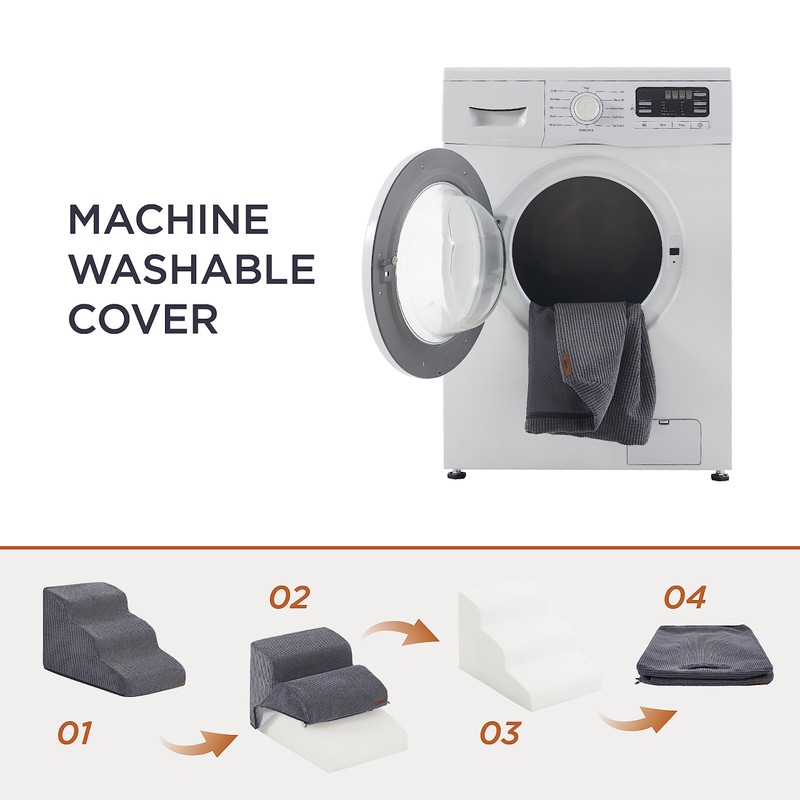 - Easy to Clean: Keeping these pet stairs for dogs fresh and tidy is a breeze. Simply remove the foam core and machine wash the outer cover separately in cold water on a delicate cycle. Please note, the foam core should not be machine washed or dried to ensure long-lasting use and comfort for your pets.