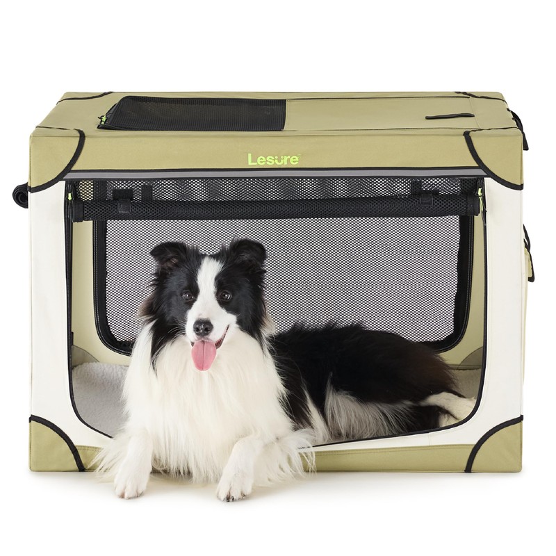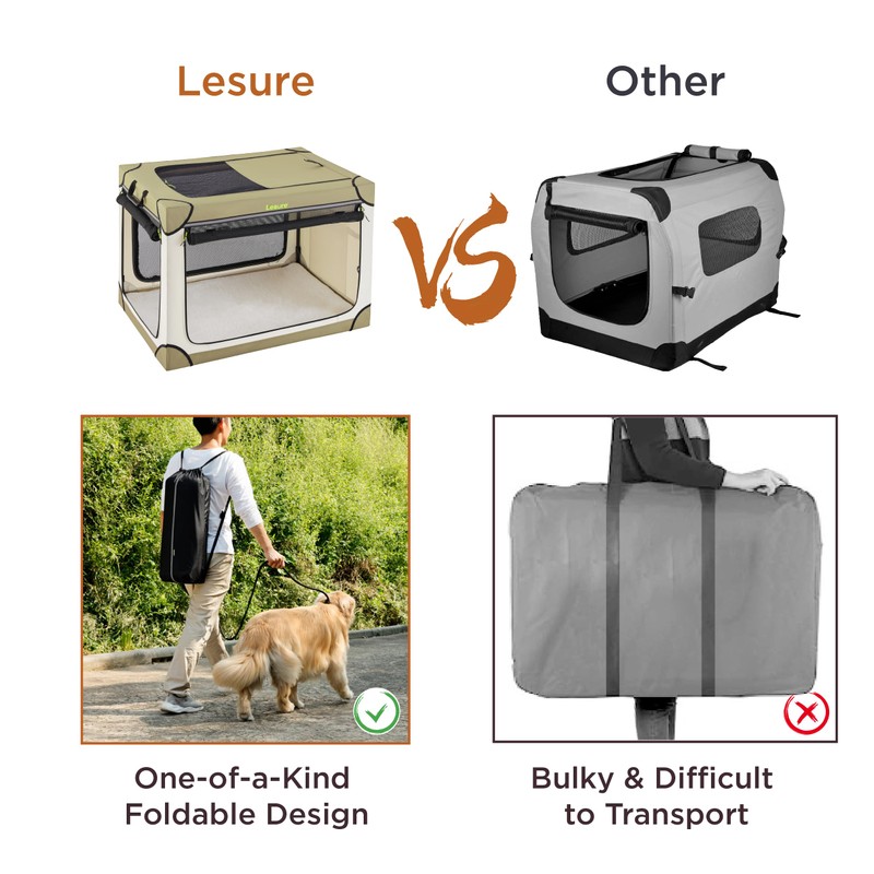 - Enhanced Safety: With a heavy-duty iron frame, this crate maintains its shape and ensures durability. Reflective strips on both sides enhance visibility, keeping your pet safe and visible. The crate is equipped with self-locking zippers, preventing your pet from escaping, while high-density durable mesh adds an extra layer of security. Additionally, an built-in leash further reinforces your pet's safety.