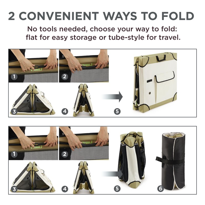 - Easy Assembly, Storage, & Maintenance: The convenient and simple design allows for quick assembly within 2 minutes. The crate can be folded into two different ways, catering to various indoor and outdoor settings. It features a water resistant design with waterproof fabric, making it easy to clean with just a damp cloth. The removable and machine washable mat simplifies care.