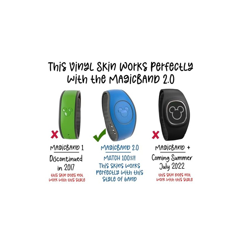 - COMPATIBLE - Compatible with The MagicBand 2.0 only. This product is NOT a protective hard case but a vinyl decal, skin wrap that covers the MagicBand itself.