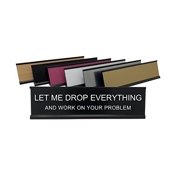 Let Me Drop Everything and Work On Your Problem - Lotsa Laughs Funny Desk Plate by Griffco Supply (Black w/ white text)