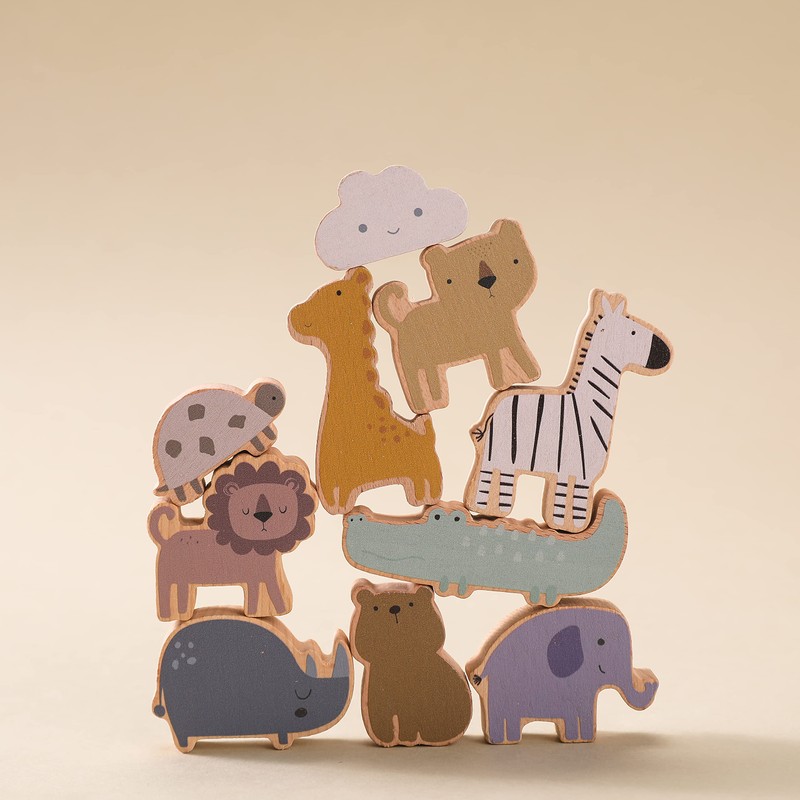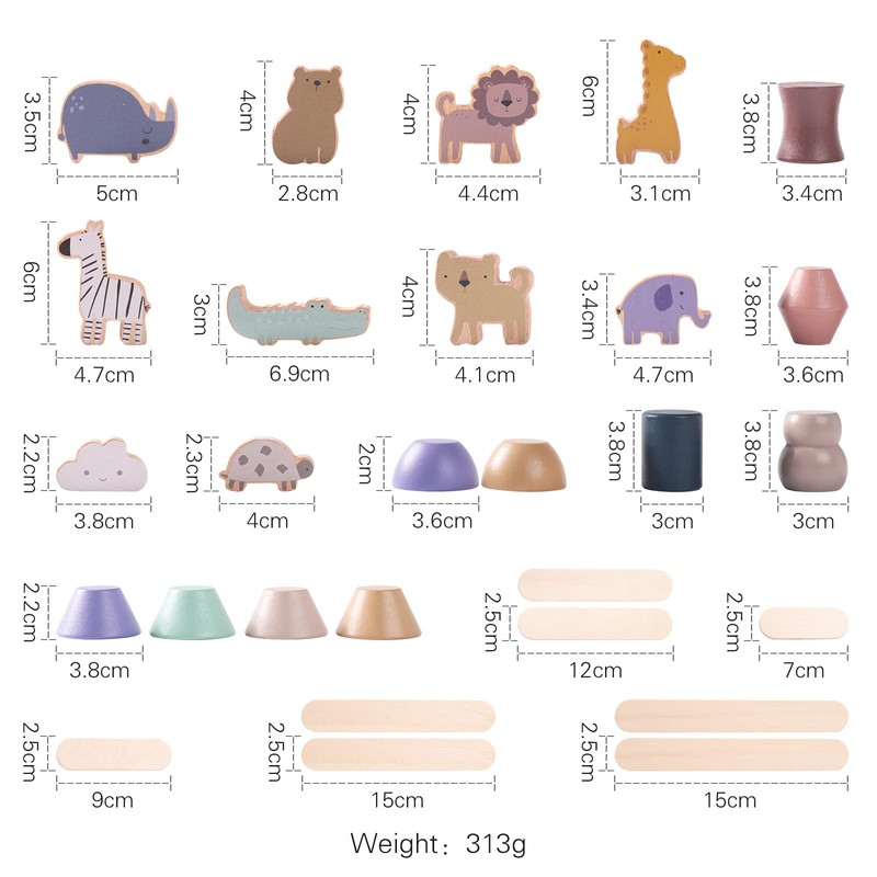 - (Various ways to play): Elegant and colorful block design, cute animal shape, wooden sticks of various lengths, in addition to providing the balance of stacking gameplay for babies, it also enriches children's knowledge of colors while also allowing them to know a variety of wild animals. Parents can stack together with their baby to enjoy their warm parent-child time!