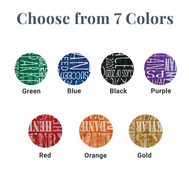 - UNIQUELY PERSONALIZED: Celebrate the graduate! Choose blue, black, red, gold, green, purple or orange and personalize with any name up to 12 characters and message up to 20 characters for a one-of-a-kind gift. Matching tote bag also available.