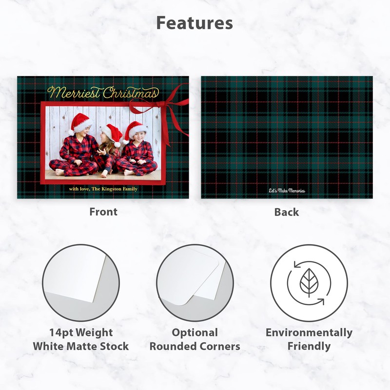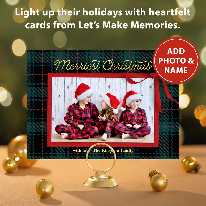 Let's Make Memories Personalized Photo Christmas Cards with Envelopes - Premium Quality - 5x7-2024 Holiday Cards & White Envelopes - Ribbon & Plaid - 50 ct