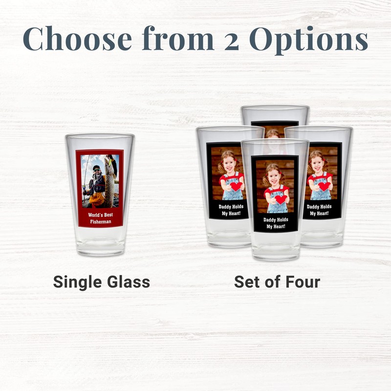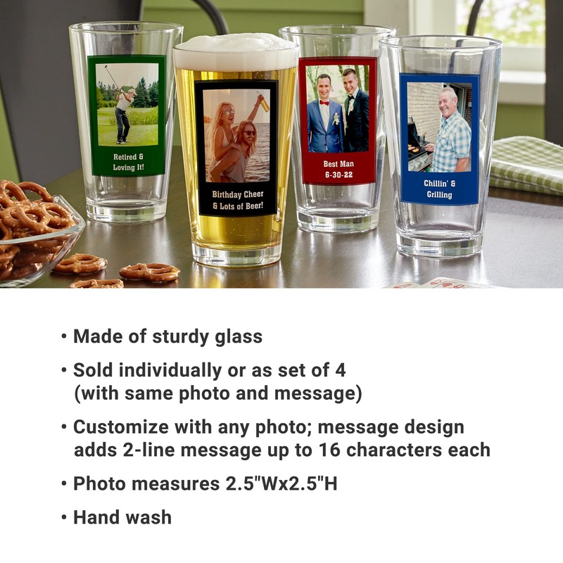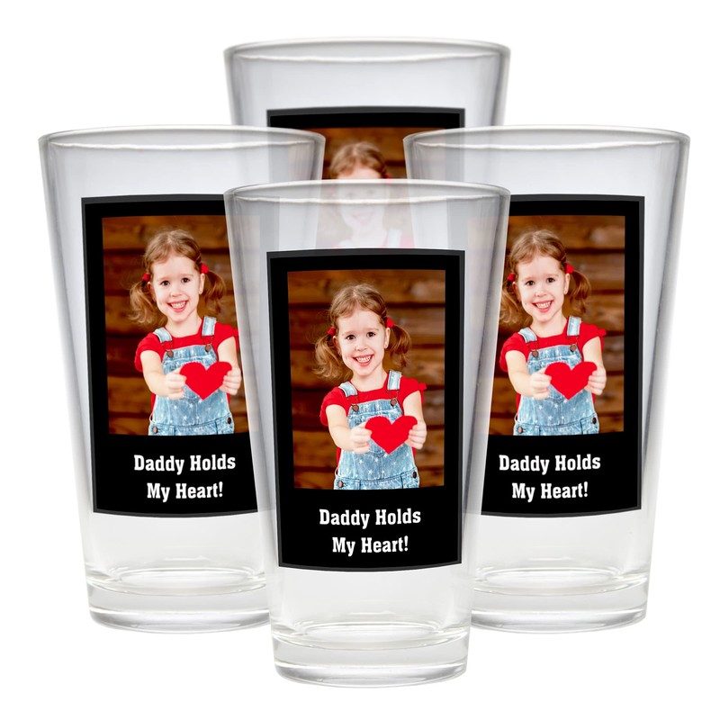 Let's Make Memories Personalized Photo Pint Beer Glass - Celebrate Dad or Grandpa - Black - Set of 4 - Customize With Photo, Message - Holds 16 oz