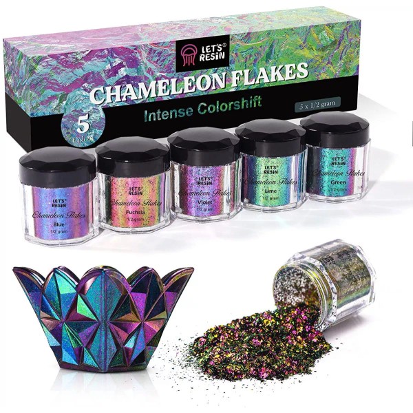 Let's Resin Chameleon Flakes 5 Colores Polvo Pigmento Resina