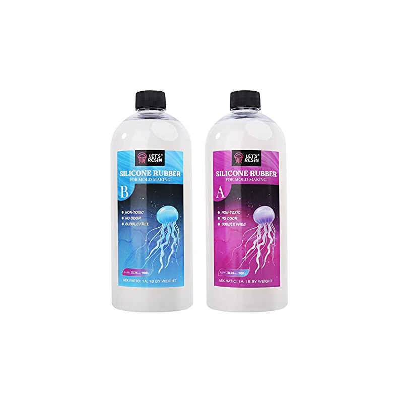 - EASY MIXING & POURING: LET'S RESIN silicone mold making kit are 2-part silicone including part A and part B; the mix ratio is 1:1 by weight (digital scale is necessary). Pour the Part A and Part B together, then slowly stir the silicone rubber about for 5 minutes, make sure to stir the mixture thoroughly for better results. The working time of liquid silicone rubber is 40~50 minutes and the complete cure time is 8~15 hours at room temperature, it varies on your mold size and thickness.