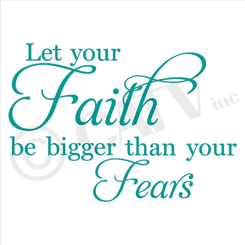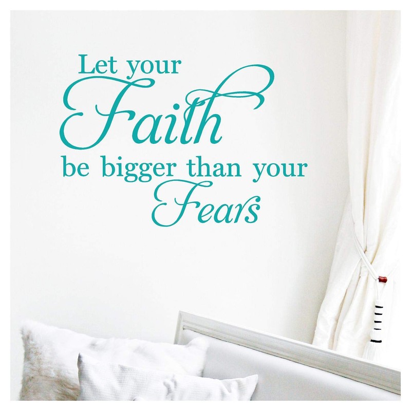 Let Your Faith Be Bigger Than Your Fears Vinyl Lettering Wall Decal Stickers (16" H x 22" W, Turquoise)