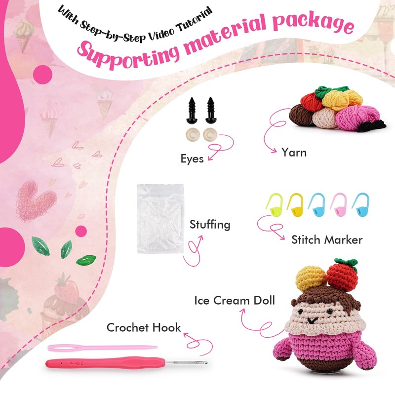 Immerse yourself in the world of crochet animals and enjoy a fun, creative experience that improves your craft skills. Start your crochet journey today with this charming crochet kit!