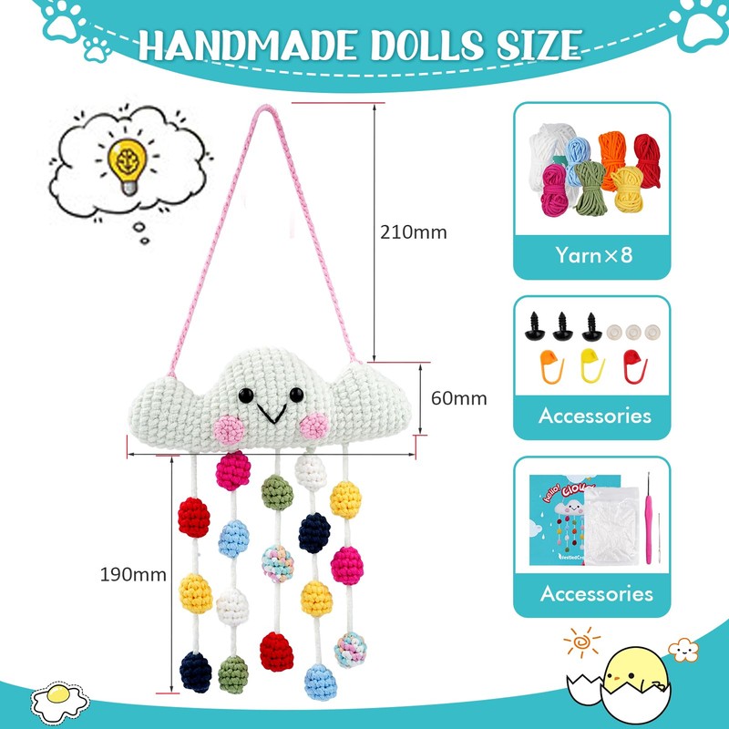 LetCartMaker Crochet Kit for Beginner, Cloudrop Complete Beginners Crochet Kit Crochet Starter Set with Step-by-Step Video Tutorials Birthday Craft Gift for Adults Kids