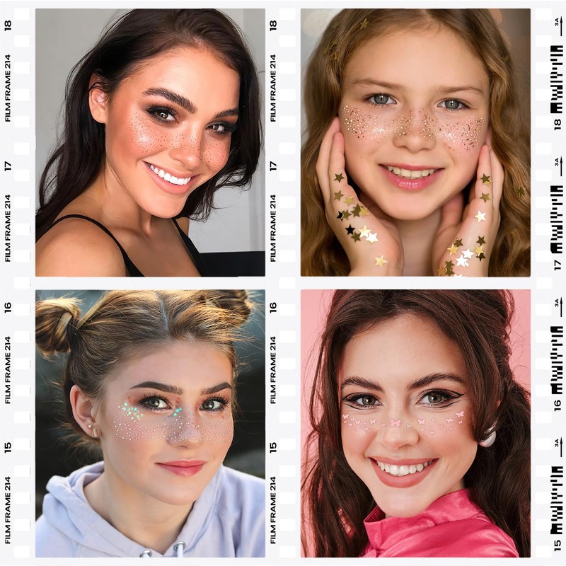 - 【Waterproof & Long-Lasting 】Whether braving rainy weather,hitting the gym,or enjoying a day by the pool,our glitter freckles is designed to withstand sweat and rain,maintaining their vibrant color and keep shining no matter what