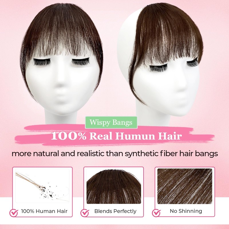 - 【100% Human Hair Bangs】Wispy Bangs Weight:5 gram,French Bangs Weight:15 gram.The fake bangs is made of 100% real human hair,which allows them to blend seamlessly with your natural hair.You can freely straighten,perm,or dye french bangs/wispy bangs according to your preferences,adding a sense of fashion and diversity