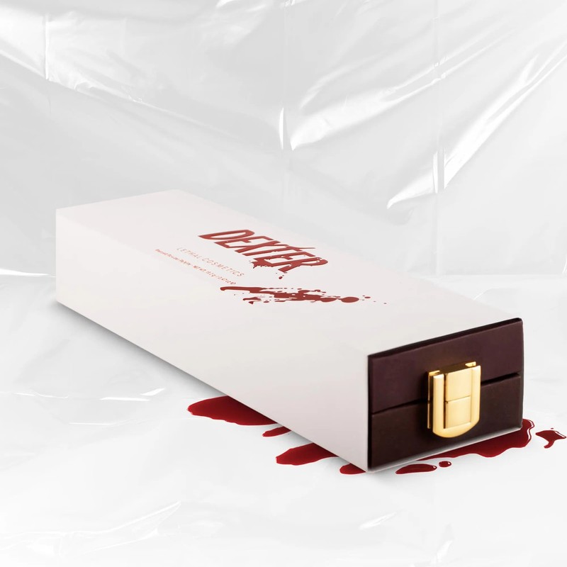 The Lethal Cosmetics Blood Slide Eyeshadow Palette is a unique 11-pan eyeshadow palette inspired by the iconic Dexter TV series. With a wooden finish and an authentic clasp, this palette exudes pure elegance and mystery. Each eyeshadow is named after Dexter’s victims, and the color combination of blood-red shades mixed with dark silver and gray tones creates a perfect balance between dramatic and elegant.