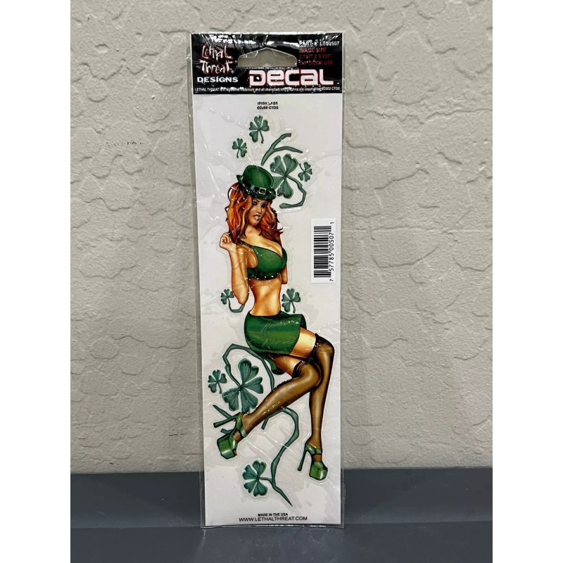 Lethal Threat NEW LETHAL THREAT Irish Lass Babe Pin-Up Decal Sticker 3"x10” LT00507