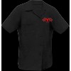 65% Cotton / 35% Polyester Lethal Threat sleeve and over pocket embroidery Lethal Threat buttons Full color back screen print Logoed neck tape Two front chest pockets Snap down collar. SHIRT RUSTYNUTS BLK LG