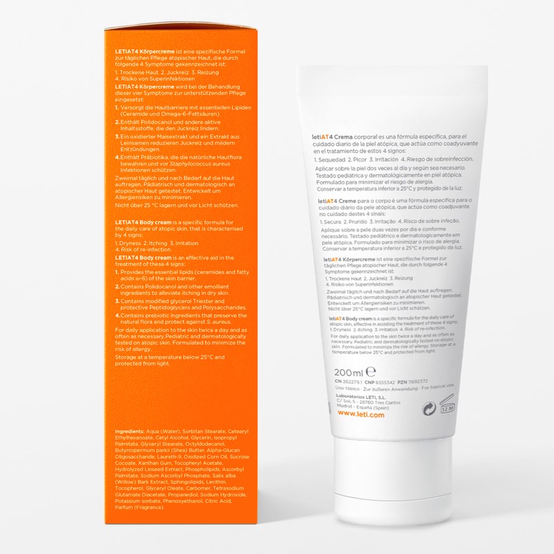 LETI AT4 Atopic Skin Körpercreme bei Neurodermitis, 200 ml Cream
