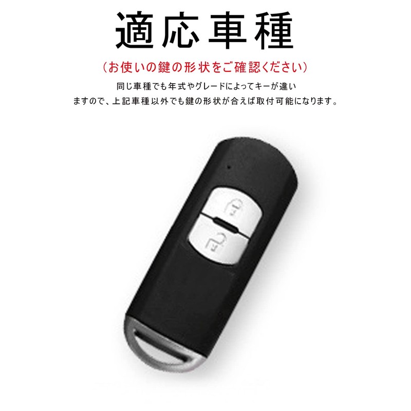 - Compatible models: Mazda CX-5 CX-3 CX-8 MPV Axela Sport Axela Sedan Atenza Sedan Atensa Wagon Demio Biante Primacy Berisa Roadster (Please check the shape of your key) *You can install it if the key matches the shape of the above models. Please make sure you match the picture of the compatible key model before purchasing
