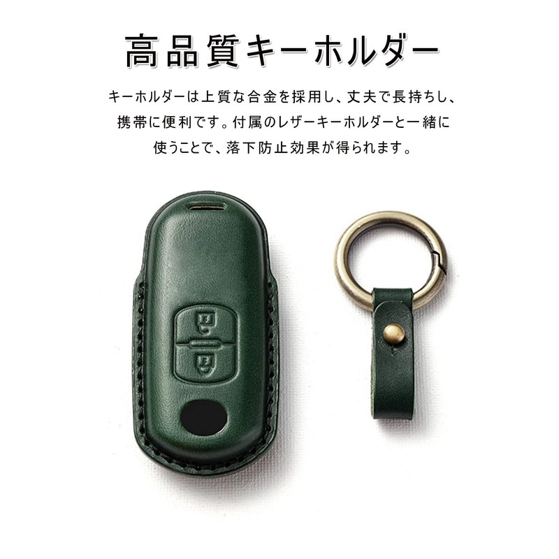LETINGFAR Key Case for Mazda, Smart Key Case, Key Cover, Genuine Leather, Designed for Mazda 2 Buttons, Keychain, Mazda Cx4cx5cx8, etc, green