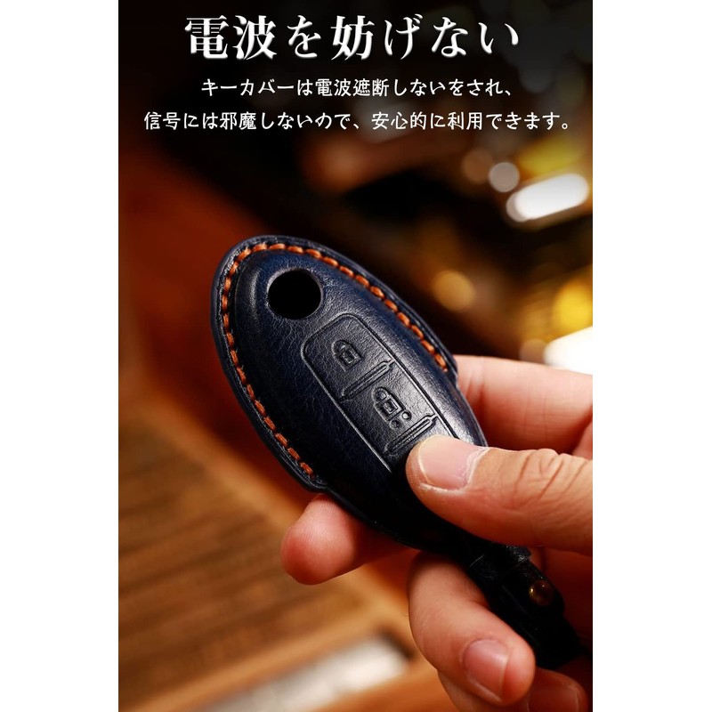 LETINGFAR Key Case for Nissan, Smart Key Case, Key Cover, Genuine Leather, Specially Designed for Nissan 2HH, 2j Keychain, NISSAN Serena, X-Trail, Elgrand, Skyline, Notebook, Key Case, blue