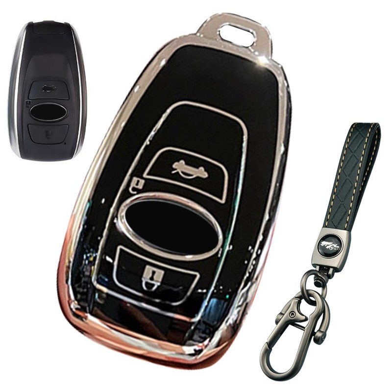 [LETINGFAR] キーケース スバル用 スマートキーケース キーカバー キーホルダー TPU 全面保護 スバルレヴォーグ レガシィ B4 インプレッサ エクシーガ G4 WRX S4 STI X 等に適用 キーケース (ブラック(キーホルダー付き))