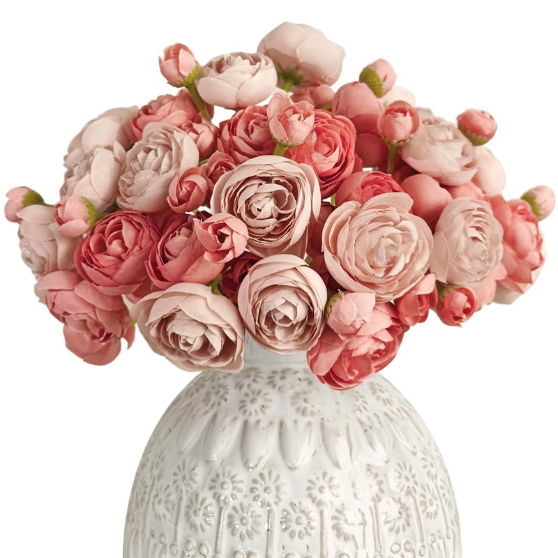 - Material: Ranunculus flowers are made of silk, and the stems are made of plastic.