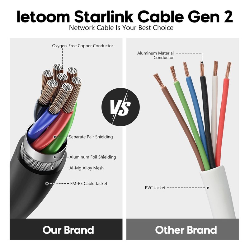 - High-Performance Construction: Crafted with 24AWG single-core copper for reliable outdoor and indoor use, our Starlink Replacement cable ensures a durable and stable network connection. Enjoy No Lag streaming with a data transfer rate of up to 1200Mbps.